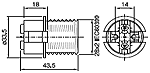 Terminals: spring type for rigid or flexible cables 0.5÷1.5 mm2 Outer shell: partly threaded with flange Connection: through holes for Ø3 mm self-threading screws or with snap-on domes Packaging: 1000 pieces T180 code: 023990 - black 023989 - white T210 code: 024001 - black 024000 - white 024002 - gold 62S/T180/BI/M/PDE/E14 |