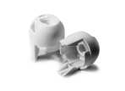 Dome for E14 one-piece lampholder Connection: with Ø10.5 mm hole Locking device notch: internal and external Packaging: 1000 pieces Code: 012581 - black 011540 - white 012324 - gold CAPPELLO E14 ART. 105 AS BIANCO |